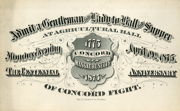 To celebrate the 100th anniversary of the historic battles, President Ulysses S. Grant visited both Concord and Lexington in 1875. He was accompanied by Vice President Henry Wilson, as well as several other cabinet members. He left Concord during the literary exercises in order to arrive in Lexington in time for his second engagement of the day.