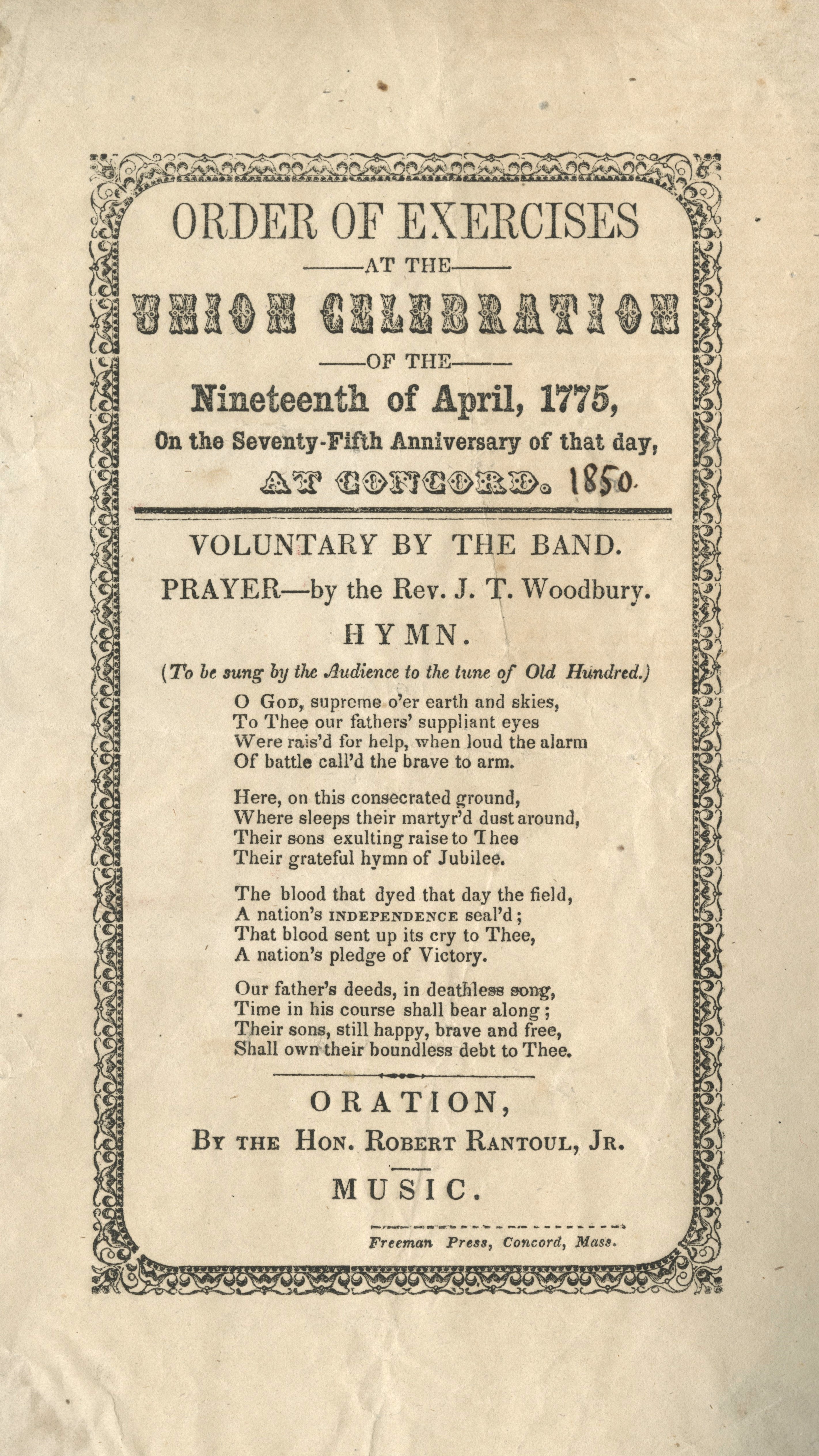 “Order of Ceremonies (1850),” William Munroe Special Collections at the Concord Free Public Library, accessed December 5, 2025, https://sc.concordlibrary.org/items/show/5280.