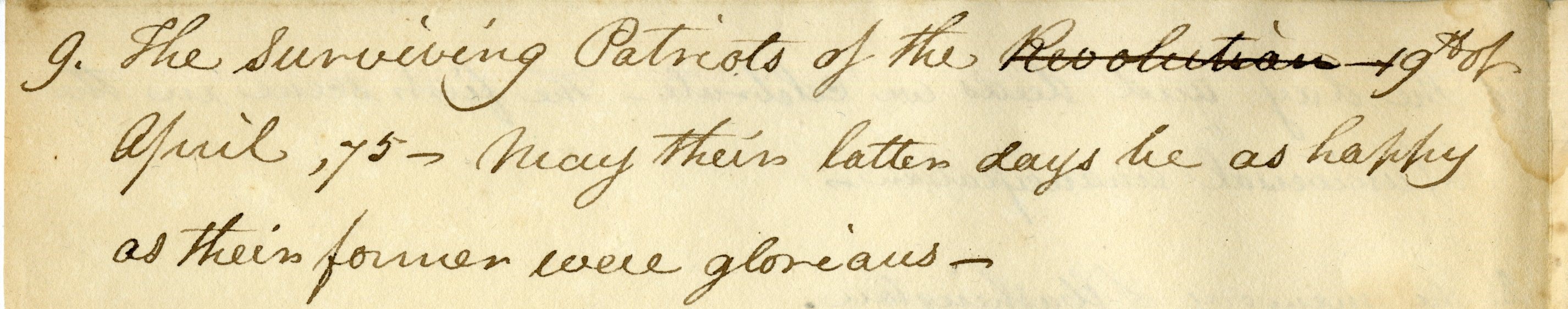 1825 Committee of Arrangements , “Toast to the Surviving Patriots,” William Munroe Special Collections at the Concord Free Public Library, accessed December 5, 2025, https://sc.concordlibrary.org/items/show/5325.