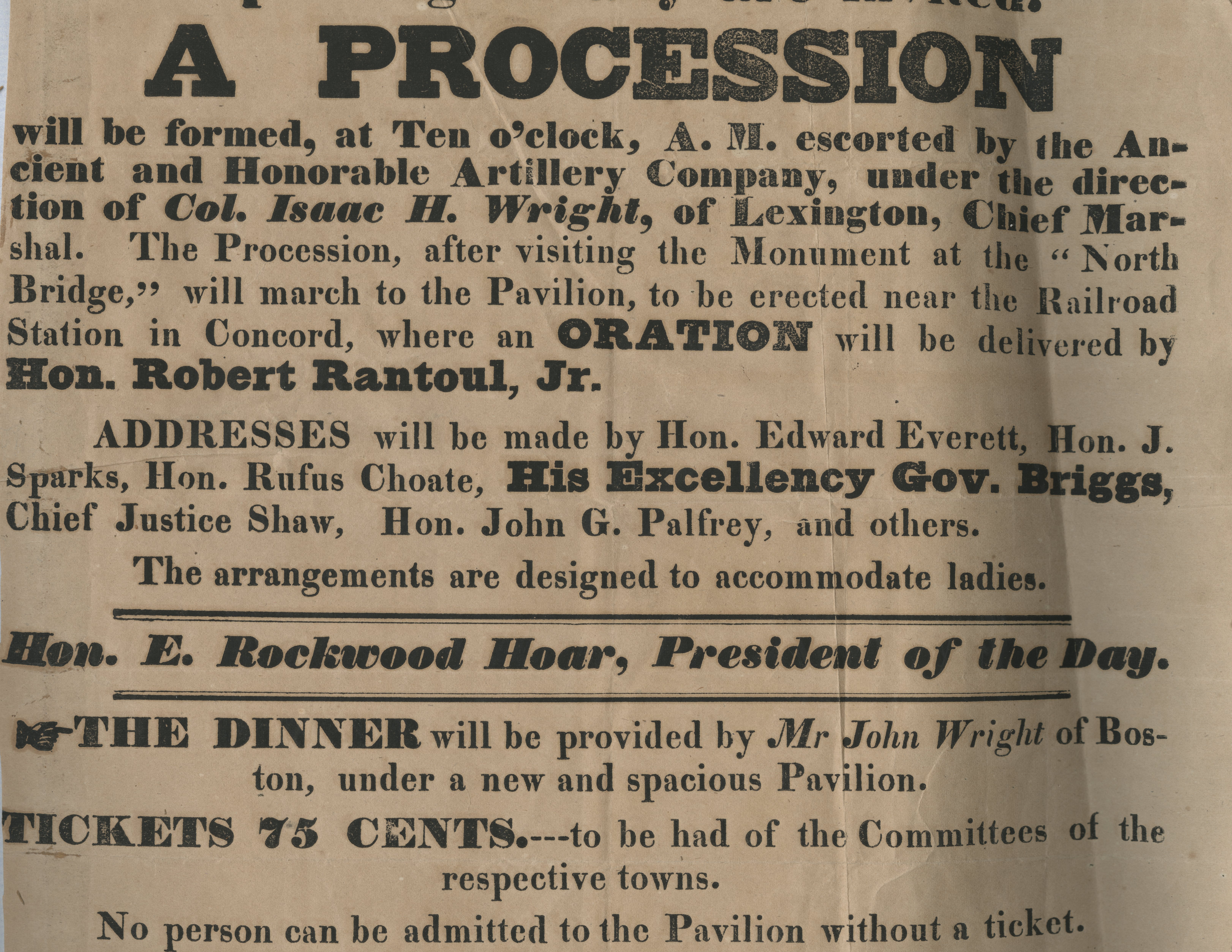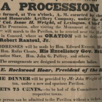 A broadside advertising the 75th Concord Fight anniversary events in 1850.
