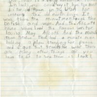 A handwritten account of various well-known aspects of Concord by Maryanne Biondo, a member of Junior Girl Scout Troop 99.