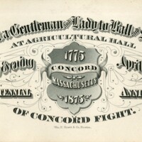 Admit a Gentleman and Lady to Ball and Supper at Agricultural Hall. Monday Evening April 19th 1875. The Centennial Anniversary of Concord Fight. 1775 Concord Massachusetts 1875.