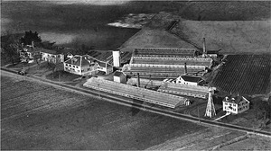 Image description: A black-and-white overhead photograph of the Wheeler Farm.