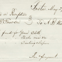 Judge Hoar obtained space in the Court House for Emerson’s books and papers, so that the dispirited man might continue to write. Francis Cabot Lowell, one of Emerson’s Harvard classmates, personally delivered a $5,000 check (the gift of himself and several other friends) to offset expenses incurred by the fire. Soon after, Judge Hoar presented Emerson with a gift of more than twice the amount of the first, collected from friends to fund a trip to Egypt. In October, with Ellen as companion, Emerson sailed for England. He visited London, Paris, Florence, Rome, and Egypt, saw his old friend Thomas Carlyle for the final time, and met John Ruskin and Robert Browning.