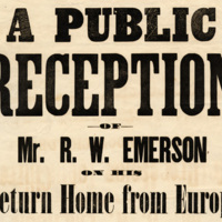 Emerson and Ellen sailed home on the Olympus, arriving in Boston late in May. Concord had planned a surprise welcome for them. On Tuesday, May 27th, detained by ruse on the ship until the town was ready to receive them, they took the 2:30 Fitchburg train. Emerson was deeply moved and more than a little confused when he stepped off the train at the Concord Depot and encountered a cheering crowd and ringing bells. A band had been hired, and a welcoming arch built by the gate of Bush. A procession of citizens and schoolchildren escorted four carriages—the final one bearing Emerson, Ellen, and the Forbeses—to the house, where Lidian waited. On their arrival, the accompanying children sang “Home Sweet Home.”