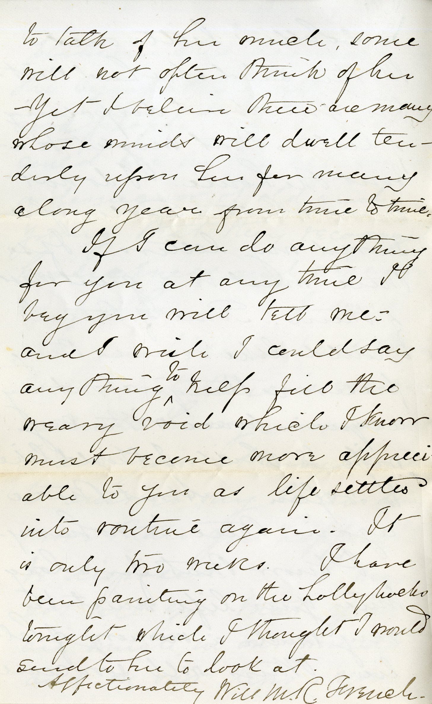 Letter of condolence from Will French to his brother-in-law Ned Bartlett upon the death of Sallie French Bartlett. French empathizes with Bartlett due to the death of his wife Sarah two years earlier.