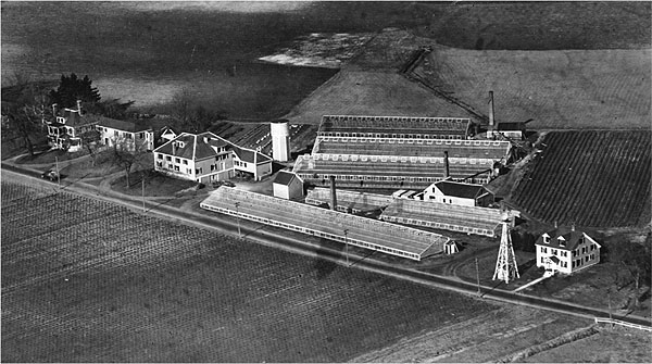 Image description: A black-and-white overhead photograph of the Wheeler Farm.