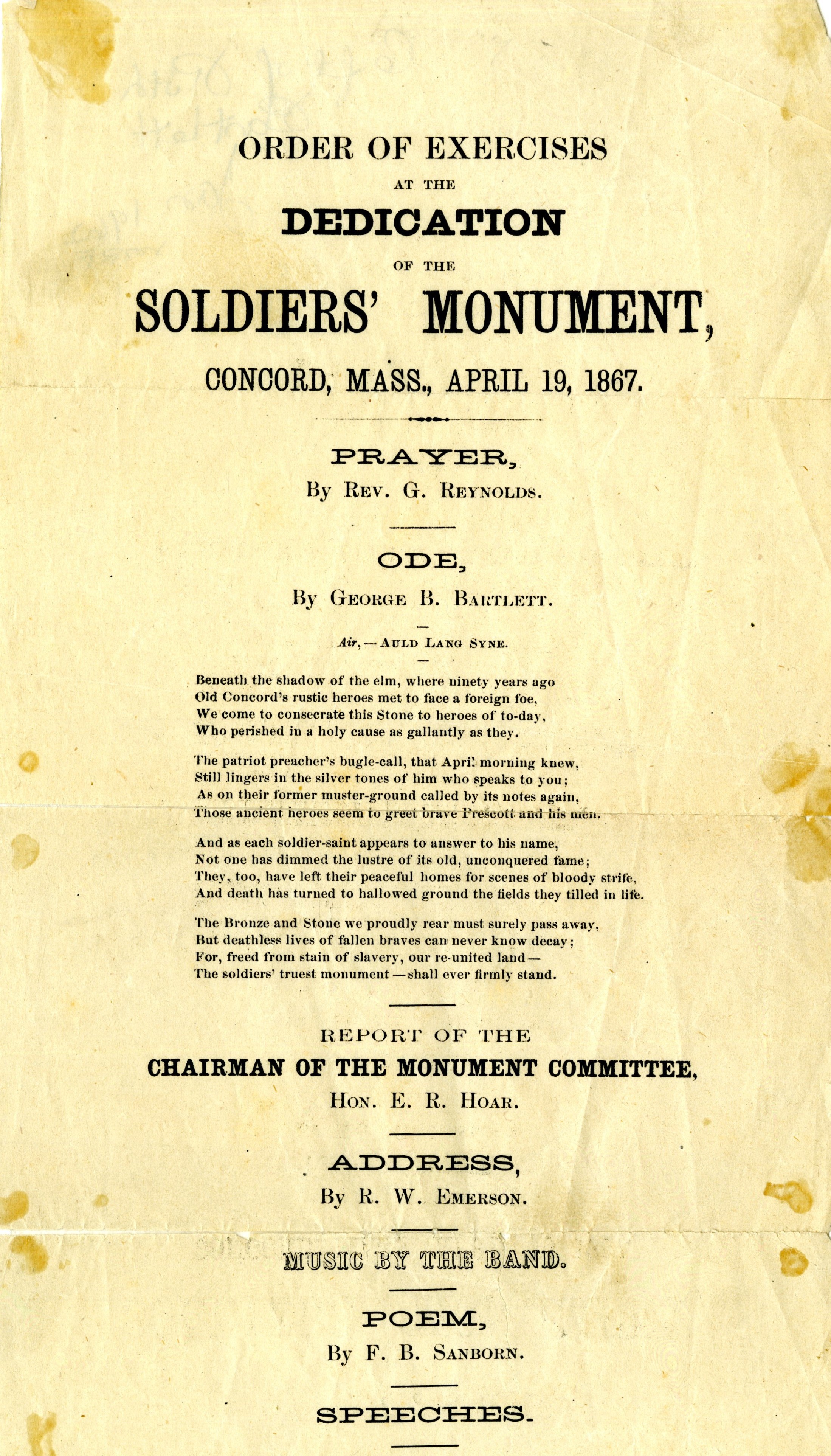 Order of Exercises at the Dedication of the Soldiers' Monument, Concord, Mass., April 19, 1867,