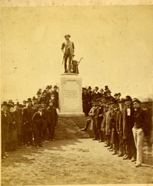The 1875 Centennial was to be the largest town celebration that Concord had ever held. Following a gift by Concord resident Ebenezer Hubbard, the town commissioned a new monument which would be placed on the opposite side of the North Bridge from the 1836 Battle Monument. In 1872, the committee asked Daniel Chester French, a local sculptor with no major works to his name, to create a model.