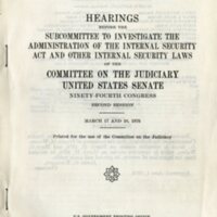 The cover of the report of the Subcommittee to Investigate the Administration of the Internal Security Act and Other Internal Security Laws.
