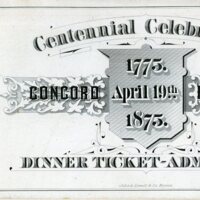 Transcription: Coupon. Centennial Celebration. Concord Fight. 1775 April 19th 1875. Dinner Ticket - Admit One.