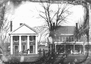 Image description: A black-and-white photograph of two Milldam properties.