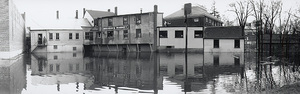 Panoramic view including Anderson's Market taken by Concord Road Commissioner Theodore Lincoln Smith a few weeks after the All-New England Flood in 1936 and documenting rising water levels and recurring floods.