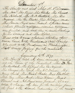 Documenting clothing donated by the Concord Female Charitable Society Donation to the Freedmen's Aid Society (1870) as well as the CFCS's semi-annual meeting.