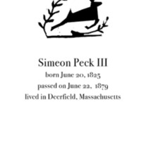 Simeon Peck III was born on June 20, 1825, to Simeon and Elvira Peck in Deerfield, Massachusetts.
