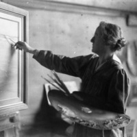 Photograph of artist Elizabeth Wentworth Roberts painting