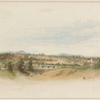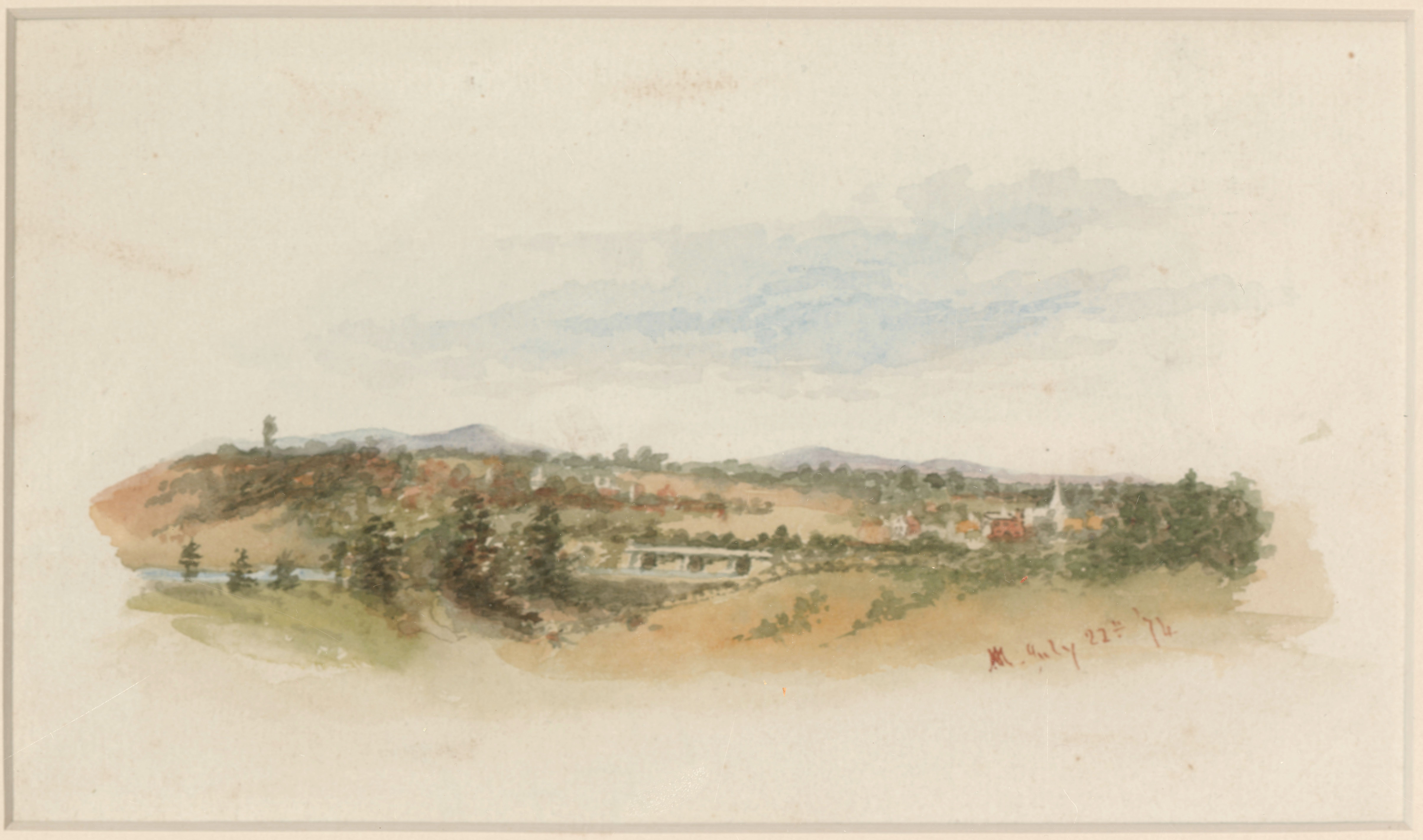 Watercolor painting of a landscape in the countryside by May Alcott Nieriker
