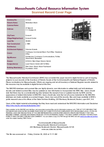 • Collection: Massachusetts Historical Commission Surveys: Concord, MA