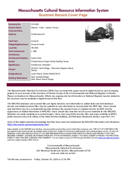 • Collection: Massachusetts Historical Commission Surveys: Concord, MA