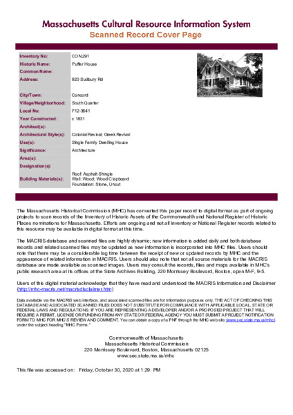 • Collection: Massachusetts Historical Commission Surveys: Concord, MA