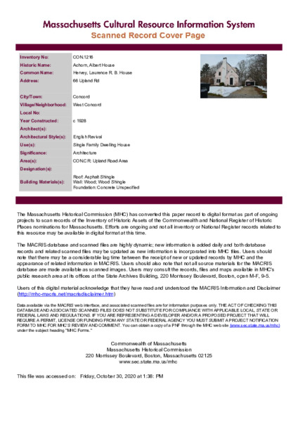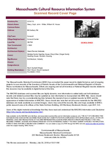 • Collection: Massachusetts Historical Commission Surveys: Concord, MA