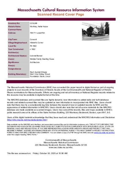 • Collection: Massachusetts Historical Commission Surveys: Concord, MA