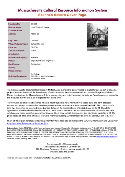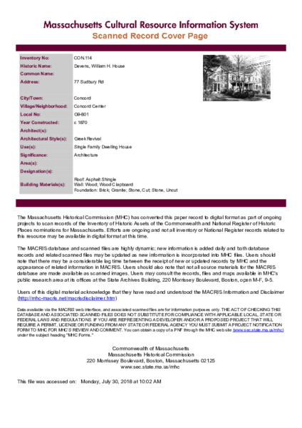 • Collection: Massachusetts Historical Commission Surveys: Concord, MA