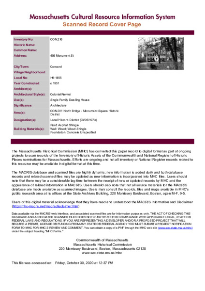 • Collection: Massachusetts Historical Commission Surveys: Concord, MA