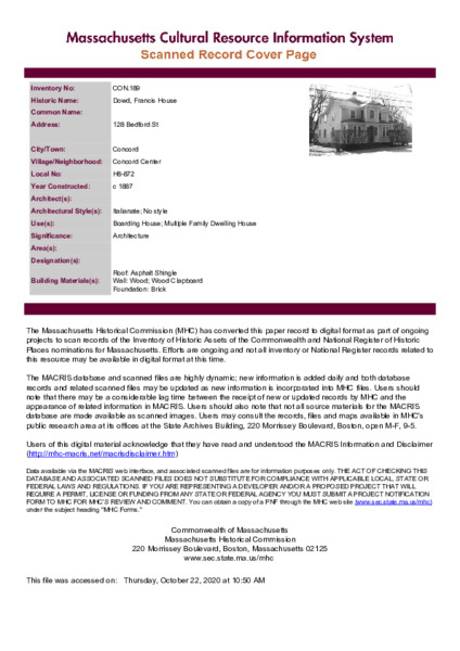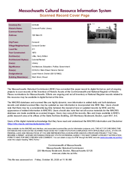 • Collection: Massachusetts Historical Commission Surveys: Concord, MA