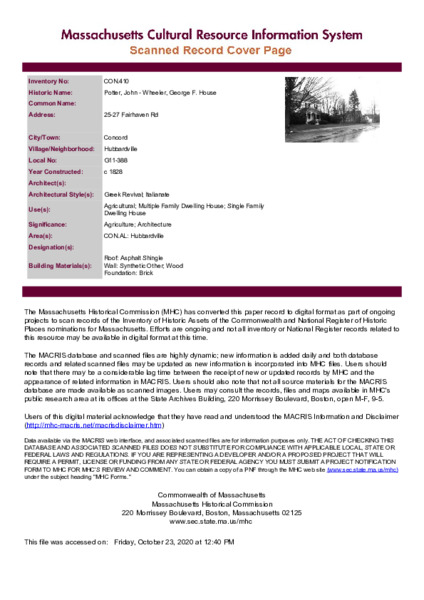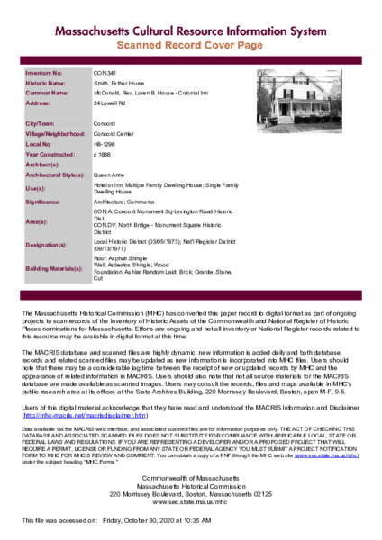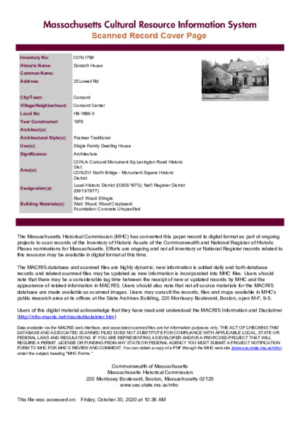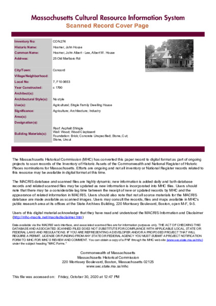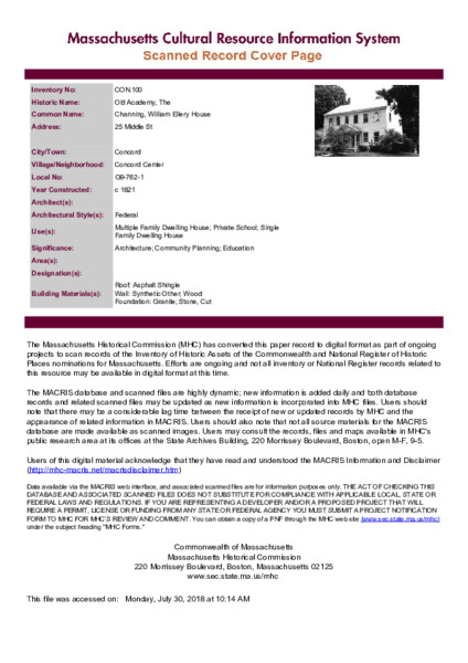 • Collection: Massachusetts Historical Commission Surveys: Concord, MA