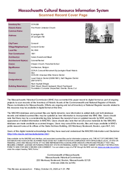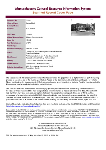 • Collection: Massachusetts Historical Commission Surveys: Concord, MA