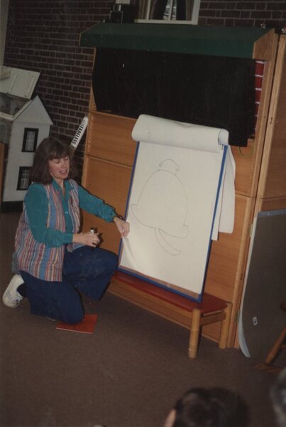These items represent a subset of the Art Collection maintained by Special Collections. For nearly forty years, the Children's Department brought in authors and illustrators to showcase their books and talent. Many of the artists showcased their talents by drawing pictures while on site. This collection includes both the drawings and the photographs of the artists in the Library.