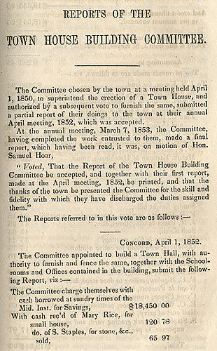 Browse Items (2119 total) Browse All Browse by Tag Search Items Browse Map Sort by: Title Creator Date Added / 212 pages Kossuth at the Town Hall 1852 Broadside 1852 Records of Town Hall Use 1851 Regulations Relative to the Use and Care of the Town House (1851) 1851 Report on Construction of the Town House, 1852/53 1852/53 Thoreau's Comments on the Expense of the Town House (1851) 1851 Henry Walling's 1852 Map of Concord (Full) 1852 Section of Henry Walling's 1852 Map of Concord 1852 John Keyes's Description of the Town House Building 1875 Card Stereograph of the Concord Town House 1875 Thoreau Survey of Town House Site (7a) 1850 Sort by: Title Creator Date Added / 212 pages Output Formats atom, dcmes-xml, json, omeka-xml, rss2
