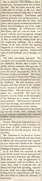 Browse Items (2119 total) Browse All Browse by Tag Search Items Browse Map Sort by: Title Creator Date Added / 212 pages A Trio of Balls at The Middlesex Hotel Middlesex Hotel Destroyed in Fire (1845) 1845 Middlesex Hotel For Sale 1825 Postcard with Middlesex Hotel Middlesex Hotel Opening Concord Prison Cemetery Plot 15: Lyman White GRAPHIC Alice Briggs Visit 8/17/1994 Willie Petersen visit 6/17/1995 Willie Petersen visit 6/17/1995 Sort by: Title Creator Date Added / 212 pages Output Formats atom, dcmes-xml, json, omeka-xml, rss2