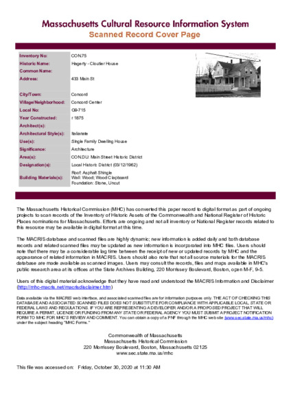 Browse Items (1949 total) Browse All Browse by Tag Search Items Browse Map Sort by: Title Creator Date Added / 195 pages 430 Old Bedford Road Unknown 1890 433 Main Street Unknown r 1875 44 Barrett's Mill Road Barrett, William G. c. 1880 44 Bedford Street Unknown c. 1840 44 Bradford Street Unknown c. 1906 44 Derby Street Unknown c. 1906 44 Middle Street Hobson, Moses c. 1864 440 Main Street Unknown c. 1848 440 Walden Street Unknown c. 1894 441 Main Street Unknown r 1875 Sort by: Title Creator Date Added / 195 pages Output Formats atom, dcmes-xml, json, omeka-xml, rss2
