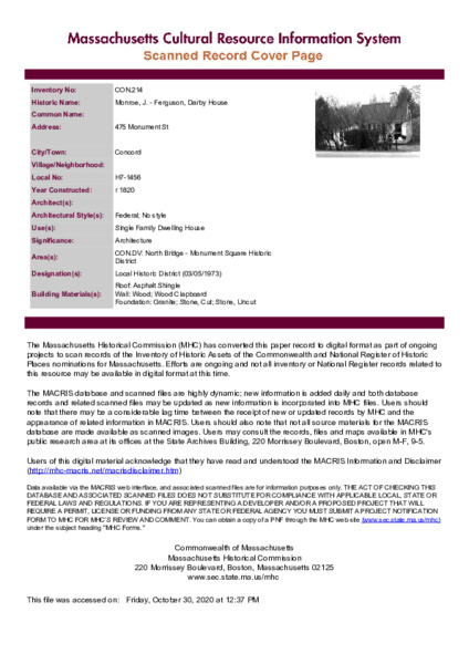 Browse Items (1949 total) Browse All Browse by Tag Search Items Browse Map Sort by: Title Creator Date Added / 195 pages 455 Lexington Road (2) Alcott, Amos Bronson; Hawthorne, Nathaniel r 1775 46 Davis Court Unknown c. 1895 46 Hubbard Street Unknown c. 1885 46 Main Street Hosmer, Nathan S.; Hosmer, Rufus 1832 46 Sudbury Road Fay, Lowell r 1845 462 Lexington Road Gray, George c. 1870 47 Lexington Road Dane, Thomas c. 1650 47-49 Lowell Road Unknown 1881 472-474 Old Bedford Road Unknown c. 1711 475 Monument Street Unknown r 1820 Sort by: Title Creator Date Added / 195 pages Output Formats atom, dcmes-xml, json, omeka-xml, rss2