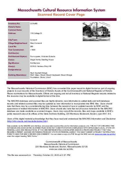 Browse Items (1949 total) Browse All Browse by Tag Search Items Browse Map Sort by: Title Creator Date Added / 195 pages 110 Cottage Street Unknown r 1905 110 Spencer Brook Road Unknown 1697 110 Walden Street Hosmer, Rufus c. 1750 1100 Monument Street 112-114 Bedford Street Unknown c. 1876 113 Hubbard Street Unknown 1894 1133 Lexington Road Unknown r 1945 1133 Lexington Road (2) Unknown c. 1980 114 Grove Street Unknown r 1895 115 Stow Street Kilham, Hopkins and Greeley 1912 Sort by: Title Creator Date Added / 195 pages Output Formats atom, dcmes-xml, json, omeka-xml, rss2