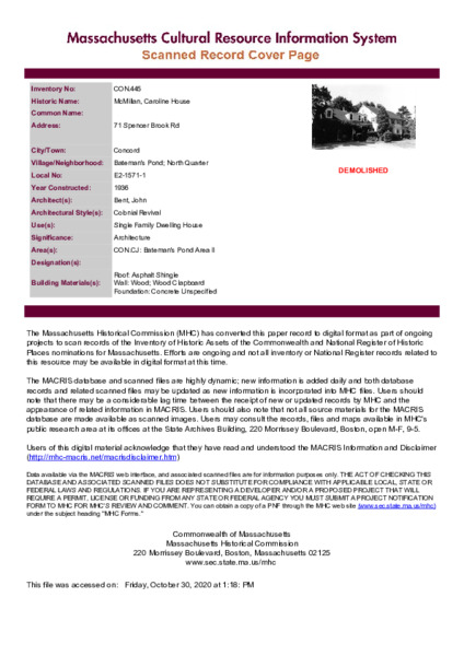 Browse Items (1949 total) Browse All Browse by Tag Search Items Browse Map Sort by: Title Creator Date Added / 195 pages 44 Barrett's Mill Road Barrett, William G. c. 1880 20 Beharrell Street Beharrell, Isaac R. 1897 15 Monument Street Benjamin, Cyrus; Wehterbee, E.C. c. 1780 41 Monument Street Benjamin, Thomas c. 1820 71 Spencer Brook Road Bent, John 1936 48 Upland Road Bergemann, Robert J. Jr. c. 1962 Concord Reformatory Cemetery Illustration Plot 94: J. Joseph Morrison Bianca Tracanna 2024 Concord Reformatory Cemetery Illustration Plot 95: Frank Reed Bianca Tracanna 2024 Concord Reformatory Cemetery Illustration Plot 128: William Ryan Bianca Tracanna 2024 Concord Reformatory Cemetery Illustration Plot 129: George H. Brier Bianca Tracanna 2024 Sort by: Title Creator Date Added / 195 pages Output Formats atom, dcmes-xml, json, omeka-xml, rss2