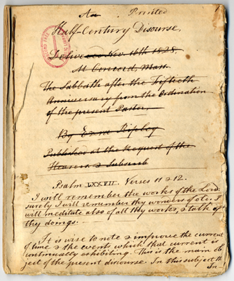 Browse Items (1949 total) Browse All Browse by Tag Search Items Browse Map Sort by: Title Creator Date Added / 195 pages Bust of Louisa May Alcott Walton Ricketson, 27 May 1839 - 11 Aug 1923 1892 <a href="http://cfplarttour.org/">Concord Free Public Library Art Tour</a> Concord Free Public Library The Gospel-Covenant; or The Covenant of Grace Opened … Preached in Concord in New-England Peter Bulkeley 1646 Sermons by Daniel Bliss Daniel Bliss 1748-1754 Portrait of William Emerson Artist unknown Undated Engraved portrait of William Emerson 1812 The Old Manse T. S. Lewis of Cambridgeport 1875 Ezra Ripley Ezra Ripley 1828 R.W. Emerson's House from Orchard Herbert Gleason 1936 Emerson's Study Herbert Gleason 1936 Sort by: Title Creator Date Added / 195 pages Output Formats atom, dcmes-xml, json, omeka-xml, rss2