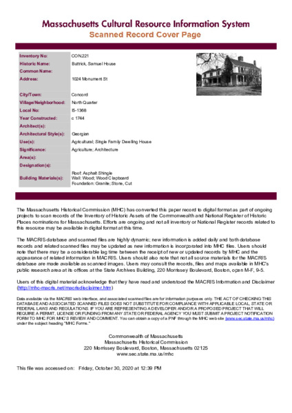 Browse Items (1949 total) Browse All Browse by Tag Search Items Browse Map Sort by: Title Creator Date Added / 195 pages "Culture" Ralph Waldo Emerson 1860 "Mourning Victory" Daniel Chester French 1909 <a href="http://cfplarttour.org/">Concord Free Public Library Art Tour</a> Concord Free Public Library Yankee (1975) Yankee 1975 1 Lexington Road Unknown C. 1820 1 Sudbury Road 100 Garfield Road Unknown c. 1906 102 Sudbury Road Hobson, Moses c. 1874 1024 Main Street Unknown C. 1814 1024 Monument Street Unknown C. 1744 Sort by: Title Creator Date Added / 195 pages Output Formats atom, dcmes-xml, json, omeka-xml, rss2