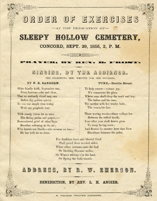 Browse Items (2 total) Tags: Sleepy Hollow Cemetery Browse All Browse by Tag Search Items Browse Map Sort by: Title Creator Date Added "Mourning Victory" Daniel Chester French 1909 Dedication of Sleepy Hollow Cemetery Ralph Waldo Emerson 1855 Sort by: Title Creator Date Added Output Formats atom, dcmes-xml, json, omeka-xml, rss2