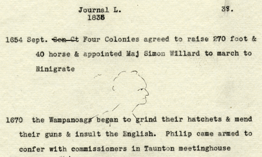 The Concord Free Public Library holds typed transcripts of the many volumes of Emerson’s manuscript journals deposited in the Houghton Library at Harvard, among them Journal L (“Concord”), which contains Emerson’s notes from a variety of sources in preparing the 1835 discourse. The library also houses the original town records scoured by Emerson for information on the periods of Concord history treated in the address. Both are useful for scholars examining how Emerson adapted his source material in interpreting the town’s history.
