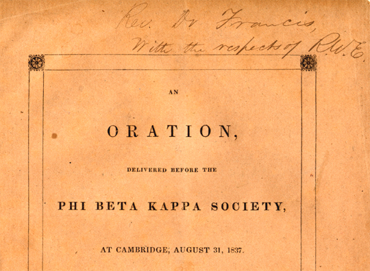 Ralph Waldo Emerson, “Phi Beta Kappa Oration,” William Munroe Special Collections at the Concord Free Public Library, accessed December 16, 2025, https://www.sc.concordlibrary.org/items/show/2024.