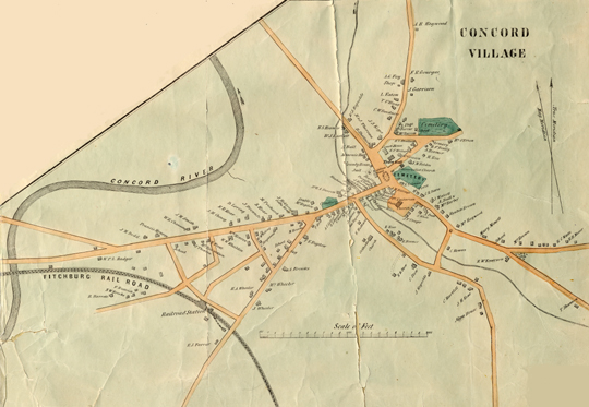 H.F. Walling, “Map of Concord Village,” William Munroe Special Collections at the Concord Free Public Library, accessed December 16, 2025, https://www.sc.concordlibrary.org/items/show/2044.