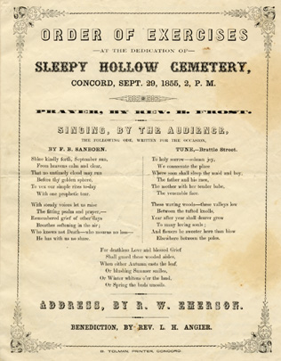 Ralph Waldo Emerson, “Dedication of Sleepy Hollow Cemetery,” William Munroe Special Collections at the Concord Free Public Library, accessed December 16, 2025, https://www.sc.concordlibrary.org/items/show/2052.