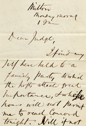 Emerson affirmed his desire to become a member of the First Parish in Concord in this letter of April 30, 1865, to John Brown, Jr. Brown was a member of the church’s Standing Committee and, from 1873 until 1899, a deacon.
