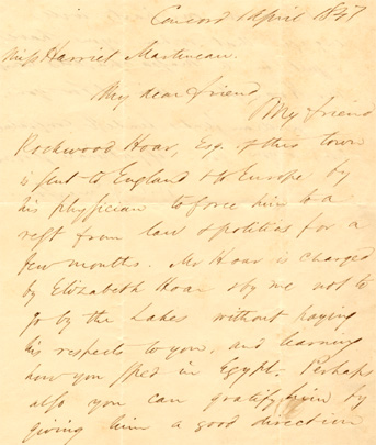 Hoar traveled to Europe once, in 1847. Emerson wrote him a letter of introduction to British author, journalist, social reformer, and abolitionist Harriet Martineau.