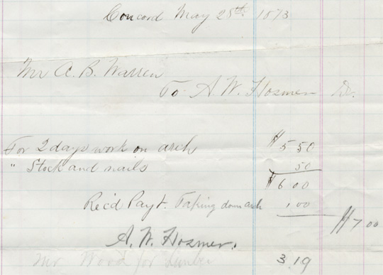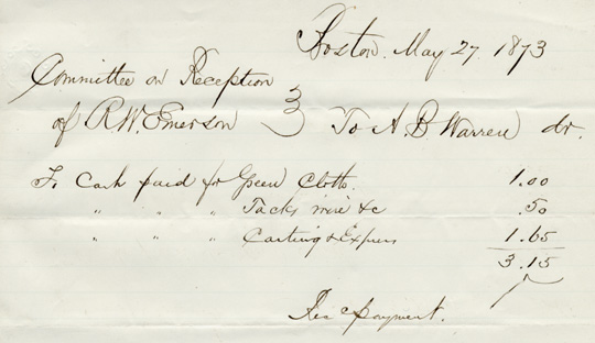 Back in Concord, John Shepard Keyes supervised repairs to Bush. In the spring of 1873, Lidian Emerson and daughter Edith Forbes threw themselves into redecorating and furnishing the house in time for Emerson’s return.