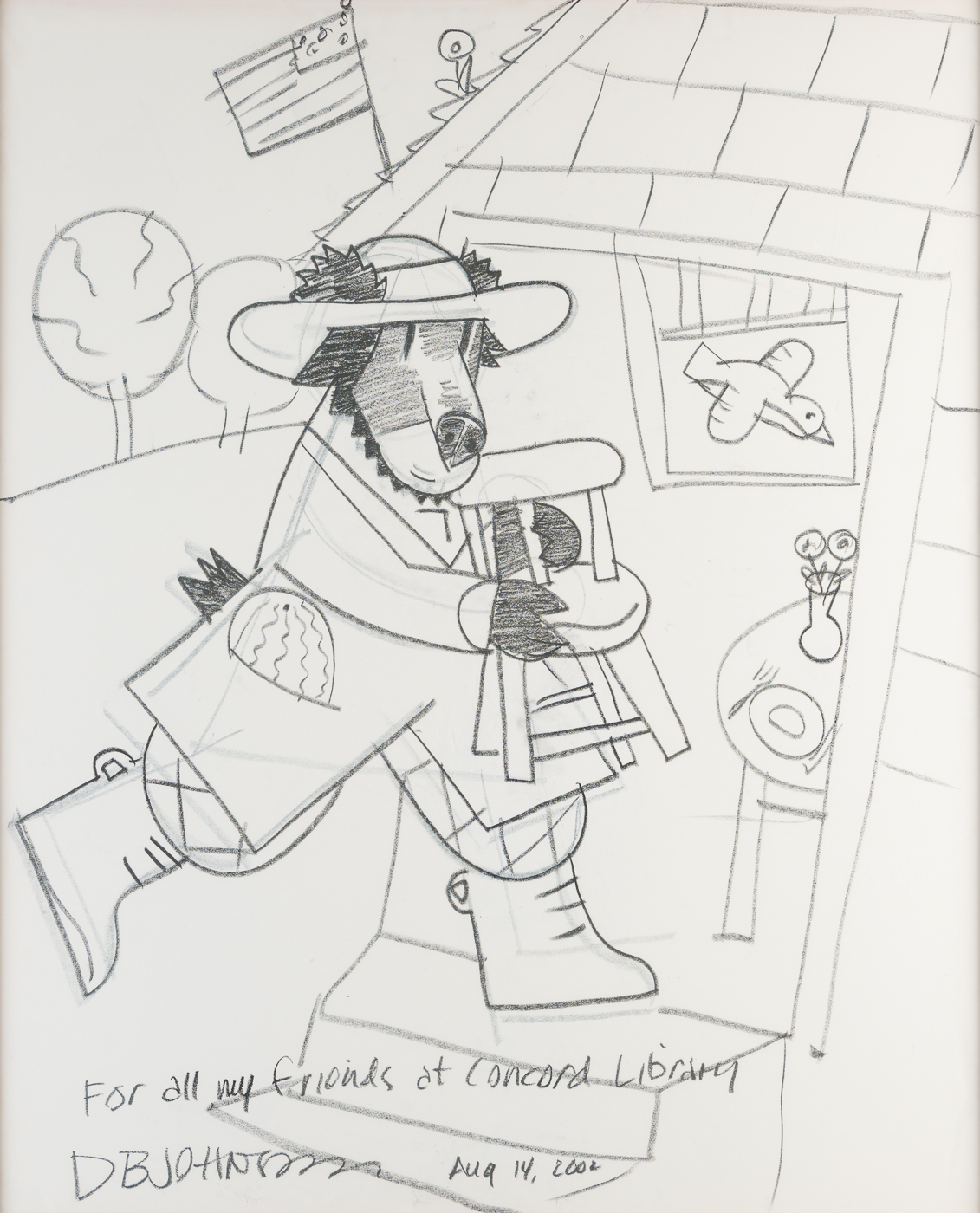 20201125-JEC_5290.jpg ← Previous Item Next Item → Dog with Chair Title Dog with Chair Subject Children's Art Description Marker on Paper Rights Images © 2020 James E. Coutré Creator D.B. Johnson Source D.B. Johnson Publisher Concord Free Public Library Date 2002 Identifier 2020-001-179 Collection Art Collection Tags Art Collection, Children's Art, Johnson Citation D.B. Johnson, “Dog with Chair,” William Munroe Special Collections at the Concord Free Public Library, accessed December 16, 2025, https://www.sc.concordlibrary.org/items/show/2307. Output Formats atom dcmes-xml json omeka-xml