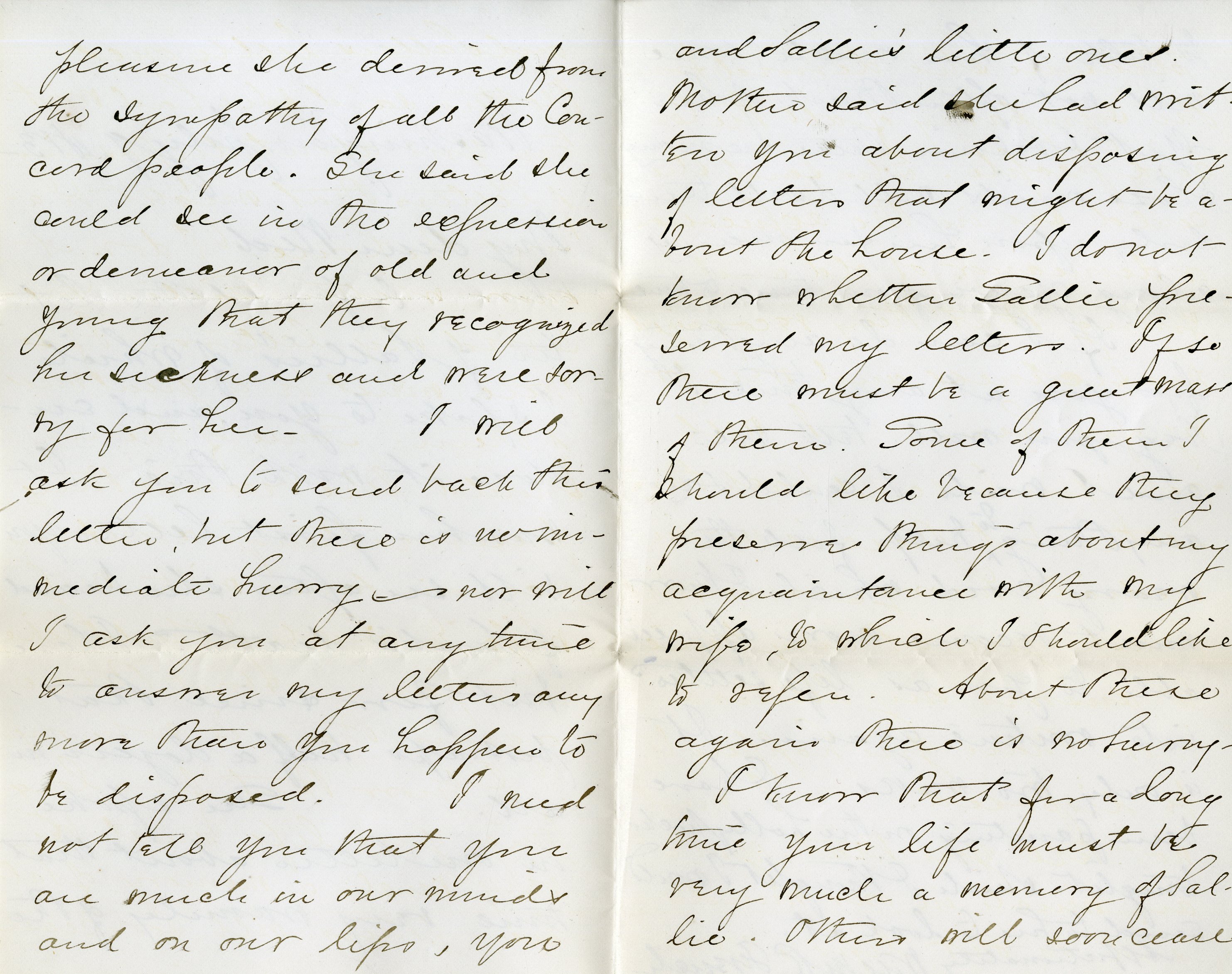 Letter of condolence from Will French to his brother-in-law Ned Bartlett upon the death of Sallie French Bartlett. French empathizes with Bartlett due to the death of his wife Sarah two years earlier.